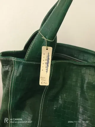 Borsa in pelle intrecciata di colore verde. - Design intrecciato. - Manici in pelle. - Chiusura con zip.
