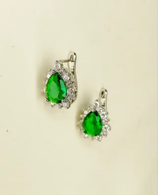 Orecchini S925 goccia cristallo verde e zirconi