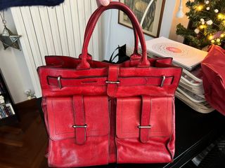 Borsa Furla in vera pelle, modello ispirato al tipo Birkin. Un accessorio elegante e capiente. - Materiale: vera pelle - Colore: rosso - Design: tipo Birkin