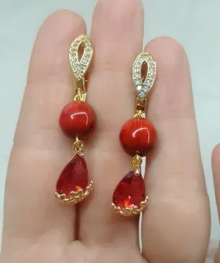 Orecchini con gancio chiuso in ottone anallergico color oro con piccoli cristalli sfaccettati color bianco incastonati lungo il dorso, pietra liscia in resina simil occhio di tigre cangiante dal color rosso amaranto al rosso arancio, bellissimo cabochon pendente a goccia decorato in ottone color oro con pietra sfaccettata in cristallo color rosso amaranto. Molto più belli dal vivo. #pietresemipreziose #preciousstones #artigianato #handmade #orecchini #earrings #bigiotteria #jewels #fashionjewelry #modaditendenza #modatendencia #trendylook #idearegalo #giftidea #cristallo #crystal #goccia #drop #rossoamaranto #amaranthred #rossoaran
