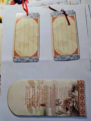 Set di due segnalibri in carta ritagliata cinese (Jianzhi) con decorazioni a tema pesci rossi e fiori di loto. Presentano dettagli tradizionali e un cordino rosso per appenderli. - Design tradizionale cinese. - Motivo di pesci rossi. Vintage