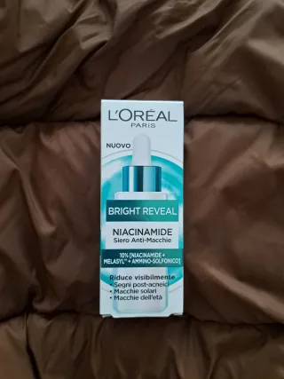 Siero viso L'Oréal Paris Bright Reveal con Niacinamide. - Formula con 10% Niacinamide, Melasyl e Ammino-Solfonico. - Aiuta a ridurre visibilmente segni post-acneici, macchie solari e macchie dell'età. - Flacone con contagocce.