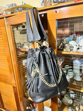 Borsa secchiello LiuJo nera con dettagli oro