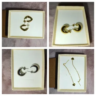 Set di orecchini in acciaio inossidabile. Include diversi modelli per variare il tuo stile. - Orecchini a cerchio dorati - Orecchini a mezzaluna dorati - Orecchini a cerchio argentati - Orecchini pendenti con cuore dorati Idee regalo natale Scatolina regalo omaggio da parte mia