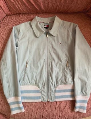Giacca bomber vintage Tommy Hilfiger, perfetta come taglia XS da donna. un capo iconico per un look casual. - Design bomber classico. - Dettagli a righe sulle maniche e sul fondo. - Zip frontale.