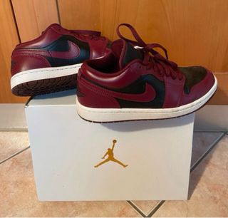 Scarpe Nike Air Jordan 1 Low. taglia 38 in ottime condizioni, indossate due volte. Prezzo originale 120€. Colore: bordeaux/nero Scatola originale Ottime condizioni