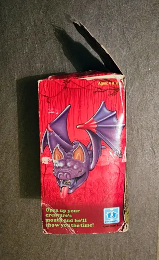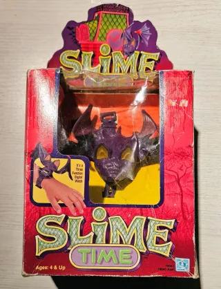 Slime Time Hasbro USA Pipistrello viola purple bat sigillato Versione americana con scotch a chiusura lati apertura scatola Fondo magazzino, inutilizzato. Purtroppo i segni del tempo sulla scatola di cartone di scarsa qualità sono evidenti.