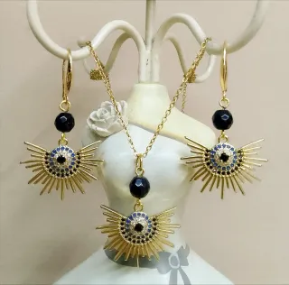 Parure Orecchini Collana Occhio onice cristallo