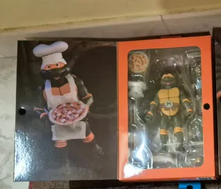 Articolo NECA, tartarughe ninja cartoon "Pizza Club", tratta dalla serie animata degli anni '80: Michelangelo con tutti gli accessori, in perfette condizioni. Con confezione originale ad apertura libro mai aperta. Nuovo. Misure: 15cm.