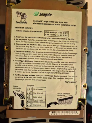Articolo Seagate, hard disk IDE, modello Medalist ST32132A, anno '97, dimensioni 3.5", capacità 2132Mg/2.1GB, funzionante e in ottime condizioni.