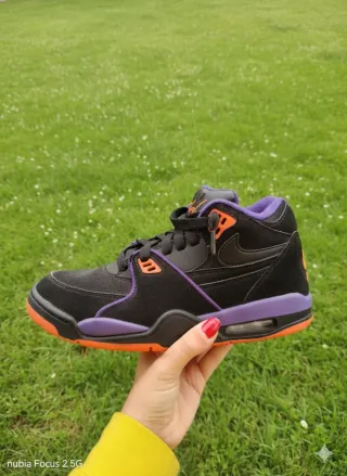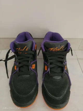 Scarpe Nike Air Flight 89 da uomo. Tomaia in pelle e suola ammortizzata Colorazione nera, viola e arancione. Non disponibile sul sito Nike. Numero 41. No box.