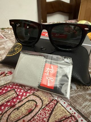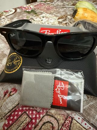 Occhiali da sole Ray-Ban modello Wayfarer. - Montatura in acetato. - Lenti con protezione UV. - Custodia e panno per la pulizia inclusi. Regalo non gradito