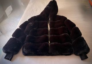 Elegante giacca corta in pelliccia sintetica con inserti in ecopelle, perfetta per aggiungere un tocco di stile. - Design con cappuccio. - Chiusura frontale con zip dorata. - Maniche lunghe con polsini elasticizzati. - Interni in fodera con logo stampato e tasche laterali esterne. - Nuova, mai indossata, con cartellino - Misura L