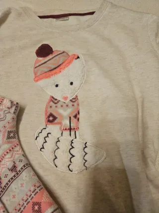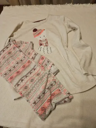 Set pigiama per bambina con simpatico disegno di un gatto con cappello e sciarpa. Ideale per le notti invernali. - Maglia a maniche lunghe. - Pantaloni lunghi con fantasia geometrica. - Morbido tessuto.