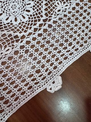 Bellissimo manufatto realizzato all'uncinetto a mano, perfetto per dare un tocco di eleganza alla tua casa. Può essere utilizzato come tovaglia, copritavolo o copriletto. Misure: 180 x 280 - Lavorazione artigianale. - Design floreale intricato.