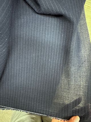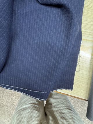 Scampolo di tessuto in lana elasticizzata con righe verticali. Disponibile nero , blu e viola Nero m 1,8 Blu m 1,4 Viola 2,1 Il prezzo si riferisce ad ogni singolo taglio Se si acquistano tutti e 3 i tagli €50 A due colori i primi 20 cm presentano aloni della frescura ma vanno via con il lavaggio (garantito!)