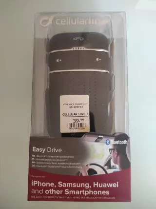 Vivavoce Bluetooth per auto, modello Easy Drive. - Vivavoce dualphone speakerphone. - Compatibile con iPhone, Samsung, Huawei e altri smartphone. - Design compatto e facile da usare.
