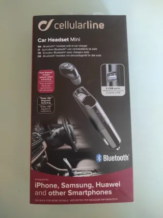 Auricolari Bluetooth con caricabatteria da auto, ideali per l'uso in viaggio. Il design compatto e le funzionalità avanzate rendono questo accessorio un compagno perfetto per i tuoi spostamenti. - Fast Answer: risposta istantanea all'estrazione. - Easy clip: aggancio magnetico. - Caricabatteria da auto con 2 porte USB. - Compatibile con iPhone, Samsung, Huawei e altri smartphone.
