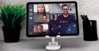 Supporto da tavolo versatile per smartphone e tablet. Ideale per scrivania o comodino. - Materiale: Plastica resistente. - Colore: Bianco.