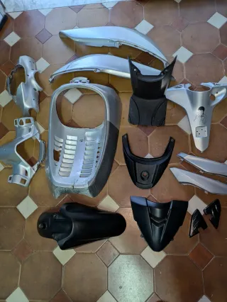 Set di carene per Honda SH 300 del 2013. - Componenti in discrete condizioni. - Parti in plastica argentata e nera.