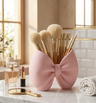 Elegante porta trucchi con un design a forma di fiocco. Perfetto per organizzare i tuoi pennelli e altri accessori per il make-up. - Design a fiocco unico. - Materiale resistente e facile da pulire. Realizzato in stampa 3d Dimensioni cm Altezza 14 Larghezza 16 Profondità 6