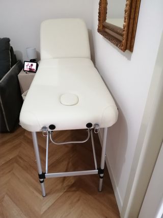 Lettino da massaggio portatile e pieghevole facile da riporre. - Struttura in metallo resistente. - Rivestimento in similpelle confortevole.