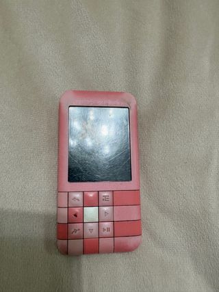 Lettore multimediale portatile. - Colore rosa vivace. - Schermo integrato. - Pulsanti di navigazione e controllo. - Design compatto.