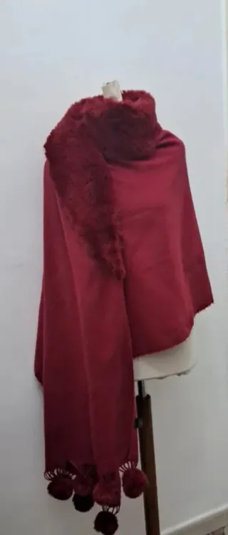 Elegante sciarpa vintage, perfetta per aggiungere un tocco di stile. - Dettaglio con pompon. - Bordatura in morbida pelliccia sintetica.