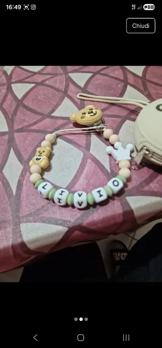 Catenella porta ciuccio con nome personalizzabile