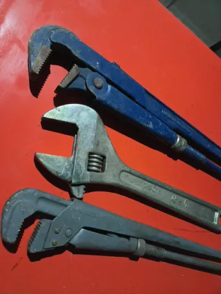 Set di 1 chiave inglese regolabile e 2 chiavi a pappagallo.