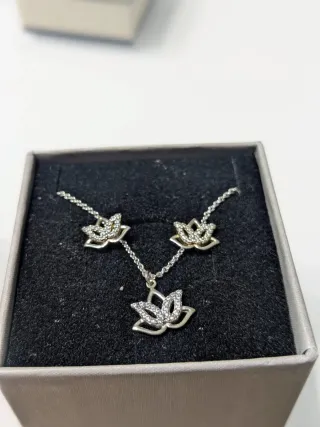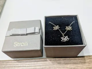 Elegante set Stroili composto da collana e orecchini a forma di fiore di loto. - Design a fiore di loto con zirconi. - Chiusura a moschettone per la collana. - Perfetto per un tocco di raffinatezza.