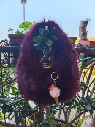 Borsa in piume, un accessorio unico e di tendenza. - Materiale: piume - Dettaglio: charm a forma di coniglietto