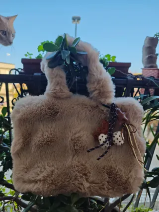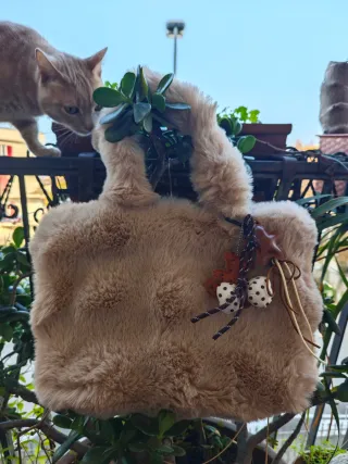Borsa morbida e accogliente, perfetta per aggiungere un tocco di stile. - Materiale: finta pelliccia - Dettagli decorativi con fiocco a pois