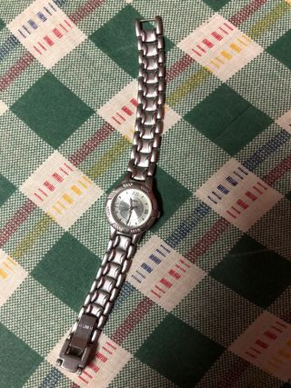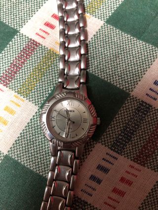 Elegante orologio da polso con cinturino in metallo. - Quadrante rotondo. - Dettagli in rilievo sul cinturino. - Chiusura a scatto. Funzionante perfettamente