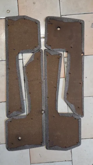 Rivestimento per il pannello della porta passeggero di un'Alfa Romeo 75 prima serie carburatori - Tessuto grigio. - Forma sagomata.