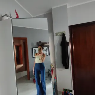 Jeans vintage Robyc'S. - Modello a vita alta. - Gamba larga. - Chiusura con zip e bottone.