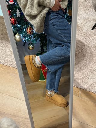 Mini stivaletto caldo in camoscio. - Fodera interna in morbida pelliccia sintetica. - Suola platform spessa e antiscivolo. - Dettaglio decorativo sul bordo.