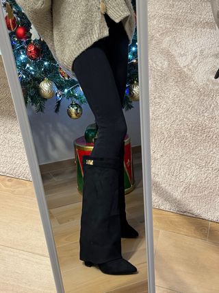Eleganti stivali neri in camoscio. - Materiale scamosciato. - Dettaglio con fibbia dorata. - Punta affusolata.