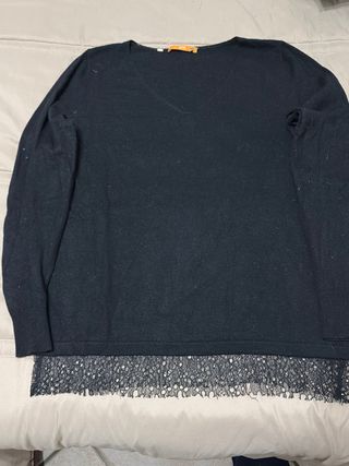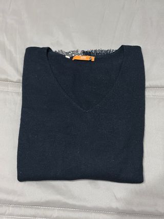 Maglione invernale da donna BOSS, un capo elegante e versatile. - Scollo a V con dettaglio in pizzo. - Tessuto morbido e confortevole.