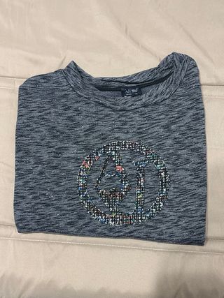 Felpa girocollo Armani Jeans da donna, con un design mélange grigio. Presenta un logo circolare sul davanti. - Girocollo - Maniche lunghe - Logo frontale