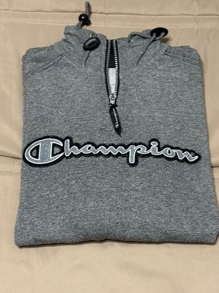 Bellissima felpa Champion, praticamente nuova. - Logo Champion sul petto. - Chiusura con zip frontale. - Cappuccio integrato.