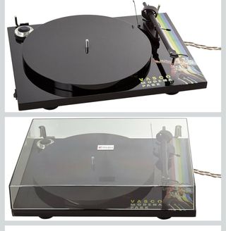 giradischi personalizzato VASCO MODENA PARK in edizione limitata a 500 esemplari. Il giradischi modello Essential III è accompagnato da un certificato che attesta l'edizione limitata a 500 esemplari con la singola numerazione progressiva. La trazione è a cinghia, velocità 33/45 giri, piatto e chassis in MDF, motore sincrono a basse vibrazioni in DC e puleggia in alluminio isolati dallo chassis, braccio diritto a bassa massa da 8,6" in alluminio con cuscinetti in zaffiro, testina Ortofon, alimentatore separato per eliminare le interferenze, cavi RCA d'uscita