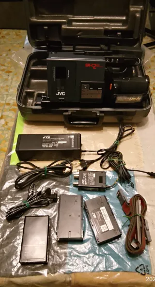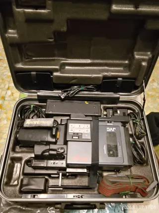 Vendo iconica videocamera JVC GR-C2 con valigetta rigida originale e accessori. Stato estetico: Ottimo, come da foto. Funzionamento: Si accende solo con cavo (batterie esauste). Il display rimane bianco e non ho cassette per testare la meccanica, anche se il vano si apre regolarmente. Vendo come non funzionante, ideale per pezzi di ricambio o come elemento d'arredo vintage.
