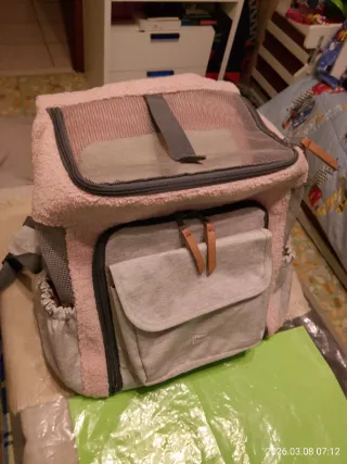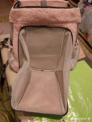 Zaino Trasportino Anione – Rosa Splendido zaino per cani di piccola taglia o gatti (max 7 kg). Unisce stile e praticità per viaggiare in totale comfort! Comfort Top: Interno in morbida pelliccia e ampie reti per la ventilazione. Pratico: Cinghie imbottite regolabili e ampie tasche per accessori. Sicuro: Chiusure a doppia cerniera e materiali atossici e resistenti. Dimensioni: 39x19x40 cm. Facile da pulire e come nuovo. Contattami per info!