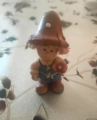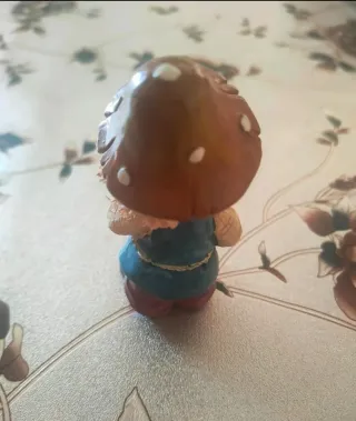 Graziosa statuetta decorativa, di un folletto del bosco. Indossa gilet blu e cappello a fungo. - Dettagli curati. - Dimensioni: 9 cm. - Design dettagliato. - Perfetta per decorare. - Ideale per collezionisti.