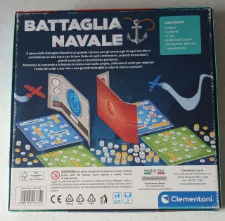 Vendo il gioco da tavolo Battaglia Navale, marca Clementoni, per 2 giocatori, adatto per bambini dai 6 anni in su. Gioco di società completo e poco usato. L'articolo include la scatola (30x30 cm), 2 schermi, 2 plance mare, 2 plance radar, 14 navi, 190 dischi mancato e 90 dischi colpito, istruzioni. Presenti lievi segni di usura sulle plance (vedere foto) ma tutto sommato in ottimo stato. Prezzo originale 15 Euro.
