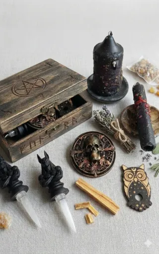 Scatola misteriosa a tema stregoneria, perfetta per gli appassionati del genere. - Include candele, cristalli e carte. - Elementi decorativi a tema esoterico. La mistery box Witch MEDIA può contenere: 10 oggetti ( random ) tra cui Incensi Porta incensi Pietre Palo santo Boccette erbe Sale nero Tarocchi Creazioni in 3 d Charms Candele ritualizzate Sticker Pendolini Decorazioni E tanto altro