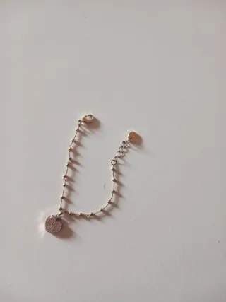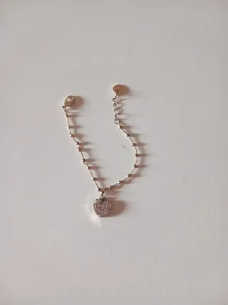 Elegante bracciale con un grazioso ciondolo a forma di cuore. - Ciondolo a cuore tempestato di brillanti. - Catena sottile con piccole perline. - Chiusura a moschettone regolabile.