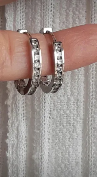 Orecchini a cerchio in arg. 925 rodiato (non scurisce) con zirconi perfetti, molto luminosi. La chiusura è a perno invisibile a scatto. Diametro cm 2. Possono essere unisex! * Confezionati con scatolina