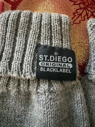 Guanti in lana grigi con polsino a costine. - Logo ST. DIEGO ORIGINAL BLACKLABEL sul polsino.
